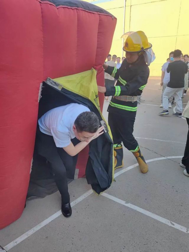 曲建華副總裁親自帶頭體驗逃生帳篷項目